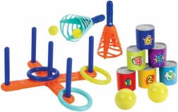 Divertiti con il Set di giochi 3 in 1, che include tre giochi famosi per interni ed esterni: acchiappa la pallina, anelli a croce e abbattimento lattine. Realizzato in plastica resistente in Francia.