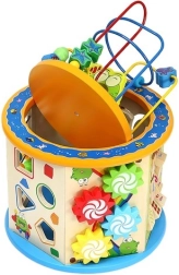 Scopri il versatile cubo educativo in legno 8 in 1, che offre ore di divertimento e allo stesso tempo sviluppa la motricità fine, il pensiero logico e il riconoscimento di colori, forme e numeri. Il percorso a biglie sulla parte superiore, l’inseritore di forme, gli ingranaggi, l’abaco, l’orologio e il pannello di gioco rendono questo robusto giocattolo una scelta ideale per un gioco intelligente.