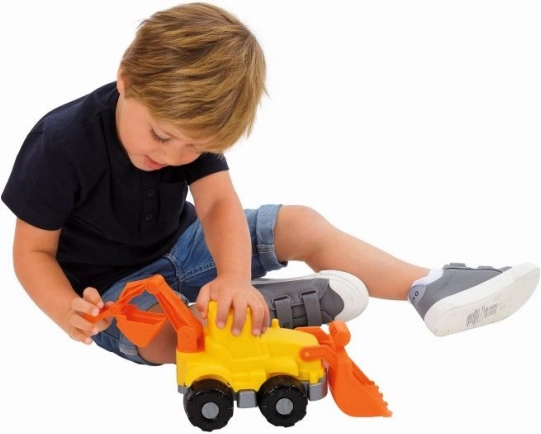 Questo resistente escavatore di costruzione in plastica è la scelta perfetta per i piccoli costruttori. Lama anteriore mobile e benna posteriore permettono ai bambini di creare diversi scenari sulla sabbia o in spiaggia. Adatto non solo per il gioco all'aperto, ma anche al chiuso.
