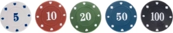 Gettoni colorati con valori 5–100 e peso piacevole di circa 4 g, si mescolano benissimo e offrono un’autentica sensazione di gioco.