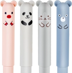 Il set include 4 eleganti penne cancellabili nei colori grigio, bianco, rosa e blu con motivi giocosi di animaletti (maialino, panda, topolina, orsetto). Grazie all’inchiostro termosensibile puoi correggere facilmente i piccoli errori: basta usare la gomma sul fondo della penna e riscrivere, senza antiestetiche cancellature.