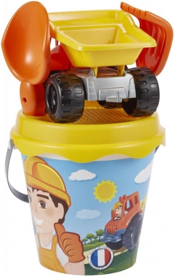 Divertente set da sabbia per piccoli costruttori composto da secchiello, setaccio, camioncino ribaltabile, rastrellino e paletta. Ideale per parco giochi e spiaggia, con diametro del secchiello di 17 cm e altezza di 18 cm.