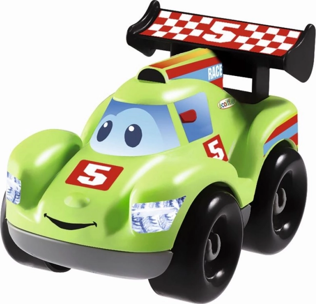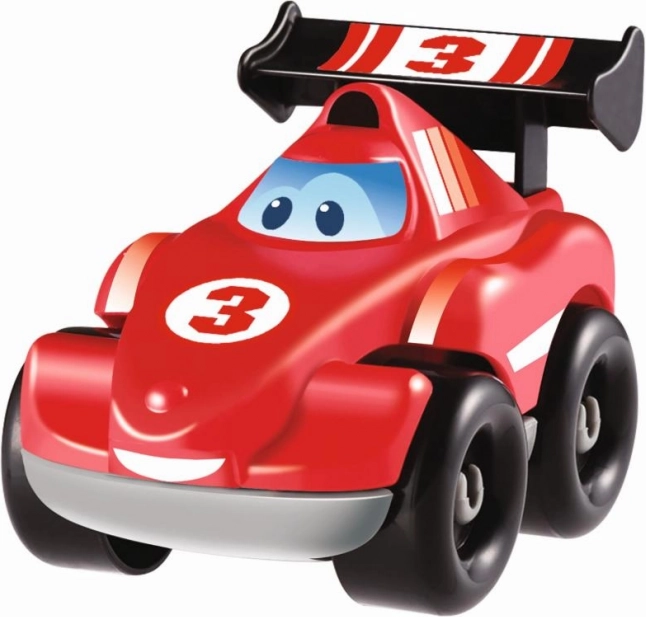Tre modelli di auto da corsa con carrozzeria intercambiabile. Ogni modello di auto da corsa con una faccia buffa è privo di spigoli vivi e si impugna facilmente. Ideale per le piccole manine dei bambini. Dimensioni del prodotto (LxPxA): 10 x 6,5 x 6,5 cm.