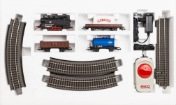 Questo set di avviamento Piko offre tutto ciò di cui hai bisogno per partire subito: una locomotiva a vapore dettagliata, tre carri merci e un ovale stabile di binari con massicciata che si monta rapidamente e garantisce un’ottima tenuta di via. Grazie al controllo analogico con regolazione fluida della velocità, godrai di una guida confortevole e realistica del convoglio.