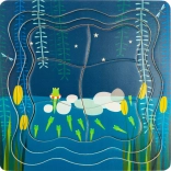 Ogni strato rappresenta una fase diversa: dall’uovo, al girino, fino al principe ranocchio. In modo giocoso, i bambini consolidano le conoscenze sulla natura e allenano l’assemblaggio in base a forme e immagini.
