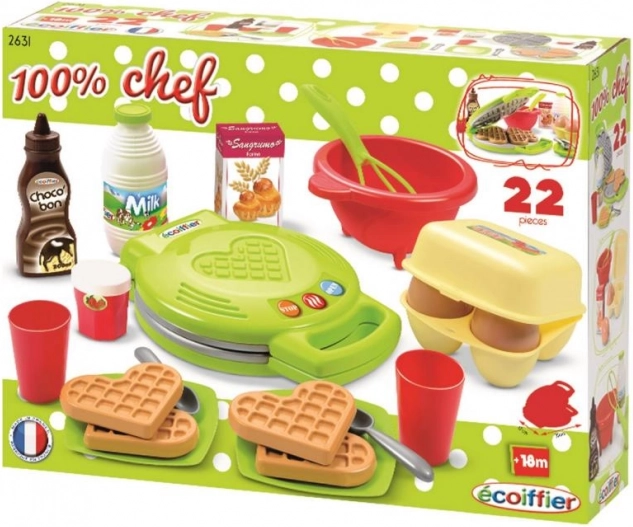 Vafliera di alta qualità completa di accessori, ideale per preparare 4 waffle a forma di cuore per i più piccoli.