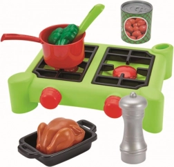 Con questo completo set di pentole i bambini possono divertirsi per ore a cucinare. Il set comprende pentole con coperchi, padelle, tegami e diverse pietanze che aggiungono realismo al gioco.