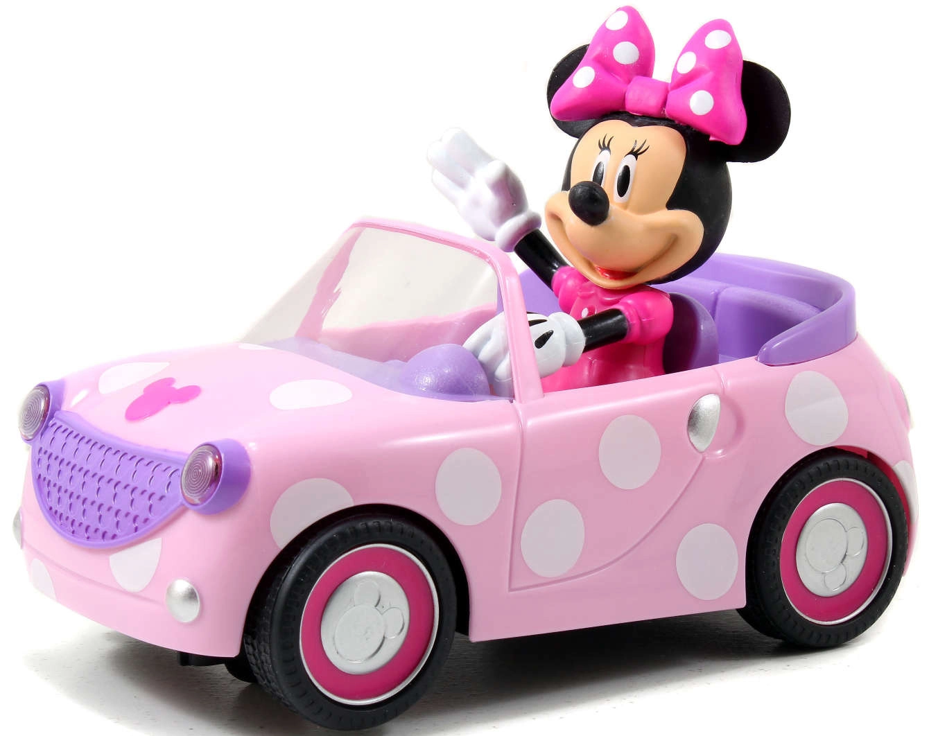 Cabriolet rosa a pois con figurina di MINNIE MOUSE saldamente integrata: stimola l’immaginazione e il gioco tematico.