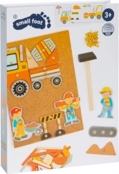 Scopri un divertente gioco di martellatura con tavoletta in sughero, pezzi in legno e martelletto che sviluppa la fantasia e le abilità dei bambini. I piccoli possono creare un proprio cantiere o una scena di trasporti con i pezzi e fissarli con le puntine. Sono incluse anche schede illustrate di ispirazione, tutto riposto in una pratica scatola. Favorisce creatività, motricità fine e concentrazione.