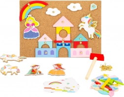 Immergetevi nel magico mondo del divertimento creativo con il Gioco da martellare Unicorno. Questo gioco permette ai vostri bambini di creare diverse scenette e storie con l’aiuto del martelletto incluso e delle colorate forme in legno. Il set comprende anche dei modelli che possono ispirare i bambini a creare immagini da fiaba.