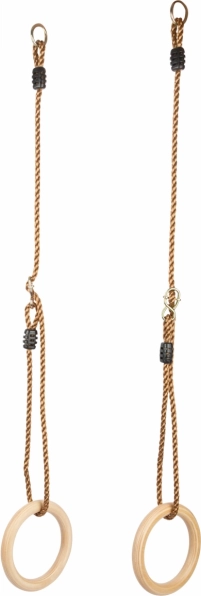 Gli anelli ginnastici hanno corde facilmente regolabili che permettono di adattarne la lunghezza in base alle necessità.