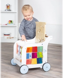 Il girello in legno Elephant di Small Foot offre ai bambini una vasta gamma di giocattoli per sviluppare le loro capacità. Design multifunzionale include: