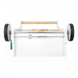 Le ruote rivestite in gomma assicurano un funzionamento silenzioso e il freno permette di adattare la velocità alle esigenze del bambino.