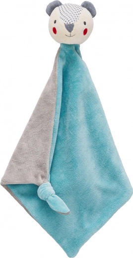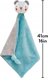 Extra morbida coperta di peluche con la testa di un orsetto sorridente. Il complemento perfetto per un riposino pomeridiano. Motivi e colori a contrasto dell'orsetto stimolano lo sviluppo sensoriale nei bambini, mentre il nodino nell'angolo della coperta può essere tenuto o morso.