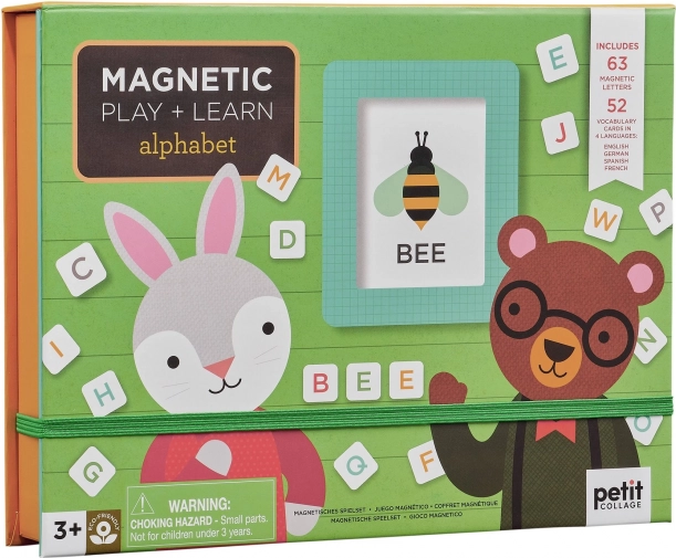 Insegna l’alfabeto ai bambini in modo divertente con il set portatile Petit Collage. Include 52 carte illustrate con paroline e 63 lettere magnetiche in quattro lingue. Grazie alle allegre illustrazioni e alle lettere colorate, imparare è un vero gioco da ragazzi. Consigliato dai 3 anni.