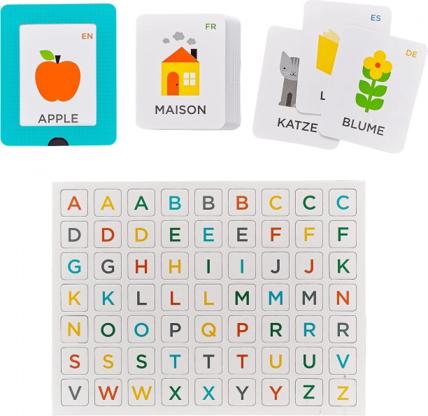 Scopri l’apprendimento giocoso dell’alfabeto con il set multilingue di Petit Collage. I bambini conosceranno le lettere e il vocabolario di base in inglese, tedesco, spagnolo e francese, grazie a carte chiare e lettere magnetiche facili da comporre e riutilizzare.