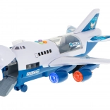 Grazie alla spaziosa cabina, l'aereo può trasportare fino a 6 auto della polizia. L'illuminazione LED integrata nei motori aggiunge attrattiva al gioco.