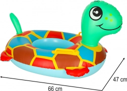 Il seggiolino gonfiabile a forma di tartaruga è un ottimo aiuto per i primi giochi in acqua. Grazie ai due fori per le gambe, il bambino siede in modo stabile, mentre il design colorato e la testa sorridente della tartaruga invitano al gioco. Il PVC resistente garantisce lunga durata e facile manutenzione.