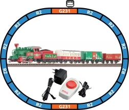 Questo speciale set natalizio propone un convoglio con livrea coordinata, composto da locomotiva a vapore 0-4-0 con tender, una carrozza passeggeri e due carri merci. I binari con massicciata integrata garantiscono maggiore robustezza, stabilità e praticità per montaggi ripetuti. Inclusi ovale base, alimentazione e comando analogico: basta assemblare e si può partire.