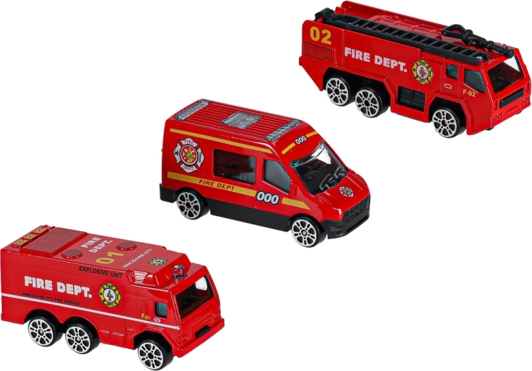 - 3 camion dei pompieri rossi: autopompa con scala, veicolo corazzato, veicolo urbano