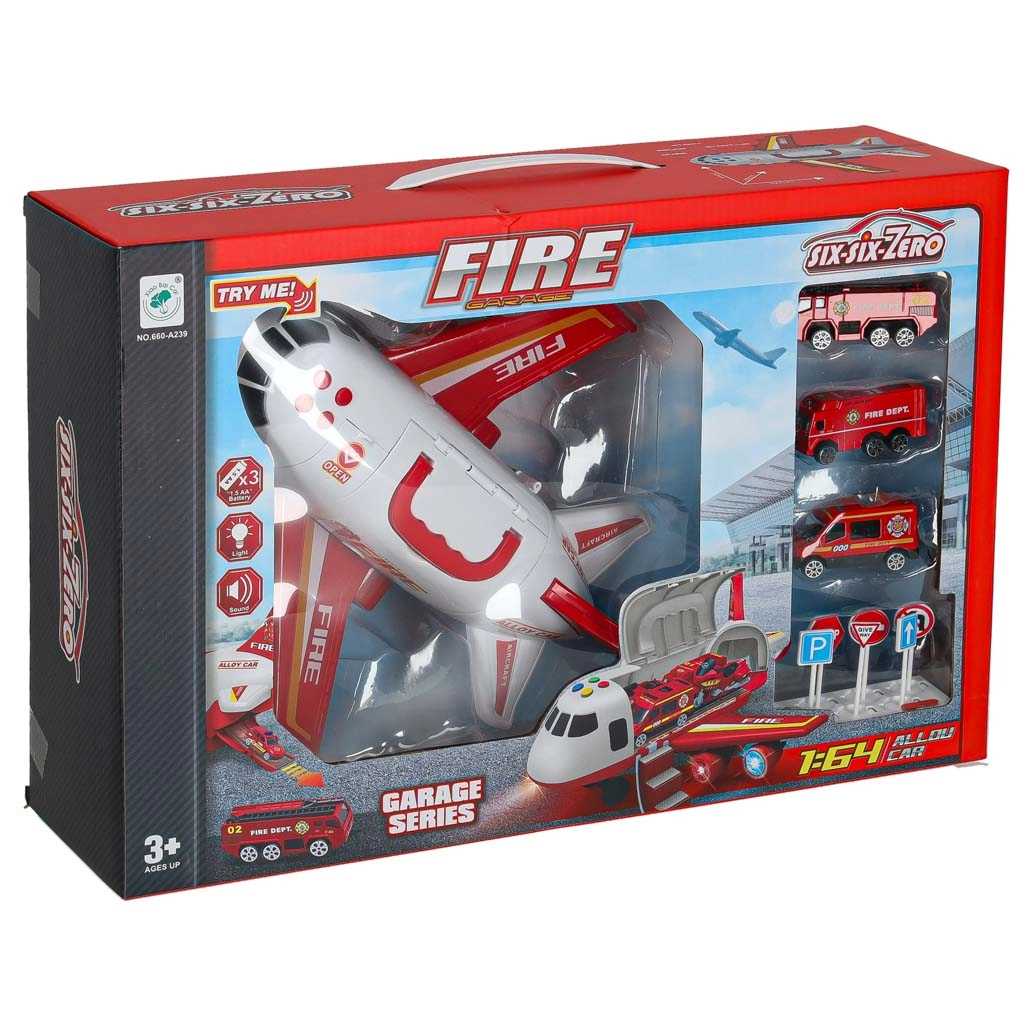 Il set include 3 camion dei pompieri e un kit con 7 segnali stradali. Tutto entra nella stiva dell’aereo, così c’è ordine ed è tutto pronto per il viaggio.