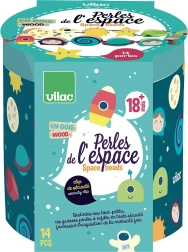 Bellissimo gioco di infilatura spaziale, ideale per sviluppare la motricità fine nei bambini. Include 14 perline di legno splendidamente illustrate come astronauta, luna, sole e razzo.