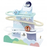Bellissima montagna russa in legno con motivi di fauna e flora invernale nordica illustrata da Michelle Carlslund. Prodotto ecologico rispettoso dell'ambiente che supporta la motricità e la concentrazione dei bambini. Diventa il primo a suonare il campanello e scopri se il pinguino, l'orso o la volpe raggiungeranno il traguardo!