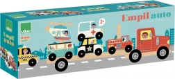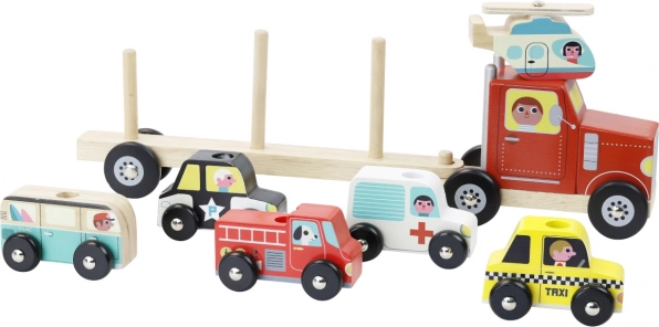 Colorato set in legno con camion e rimorchio che offre ore di divertimento creativo per bambini dai 2 anni. Sul lungo rimorchio si possono posizionare 6 veicoli: taxi, auto della polizia, autopompa dei pompieri, ambulanza, elicottero e minibus. Il giocattolo è realizzato in legno e metallo di qualità, ha una finitura liscia e favorisce la motricità fine, la coordinazione occhio–mano e la fantasia. Il design è firmato dalla rinomata illustratrice Ingela P. Arrhenius.