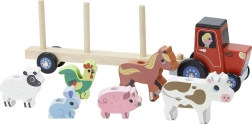 Il trattore rosso con rimorchio removibile è ideale da trascinare per la stanza. Stimola il movimento attivo e il gioco di fantasia a tema fattoria.