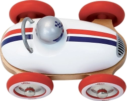 L’elegante auto in legno VILAC Roadster dal design vintage entusiasmerà i piccoli piloti e gli amanti delle decorazioni retrò. Realizzata in legno laccato, ha ruote in metallo con rivestimento gommato per una guida fluida. La struttura resistente, l’elegante finitura bianca con strisce e la produzione in Francia la rendono un regalo perfetto per bambini dai 2 anni in su.