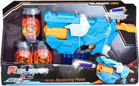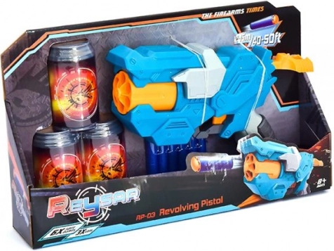 Nella confezione sono incluse tre lattine di plastica che fungono da bersagli per esercitare la mira e sei morbidi proiettili in gommapiuma per un gioco sicuro. Scelta perfetta per gare di precisione in casa e sfide d’azione con gli amici.