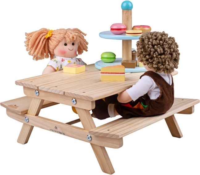 La panchina da picnic in legno di Bigjigs Toys è il posto ideale per un tea party pomeridiano con bambole o peluche. Questa robusta panchina è realizzata in legno di alta qualità, garantendo la sua durabilità a lungo termine e portando un bel look naturale in ogni stanza per bambini.