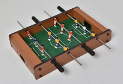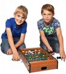Questo calcio da tavolo di dimensioni ridotte è la scelta ideale per tutti gli amanti del calcio che vogliono divertirsi anche a casa. È costruito in legno colorato e laccato, il che ne garantisce la lunga durata. Ogni squadra ha 6 calciatori posizionati su due aste, che consentono un controllo semplice e una simulazione di una vera partita di calcio.