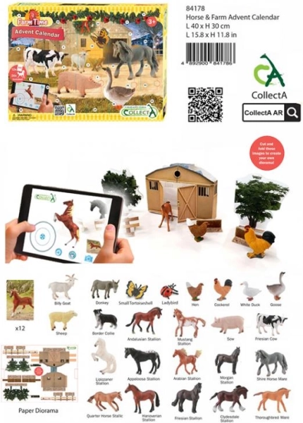 Il calendario dell'Avvento CollectA Fattoria e Cavalli renderà più piacevole l'attesa quotidiana del Natale. Dal 1 al 24 dicembre verrà svelato ogni giorno un nuovo animaletto della fattoria: