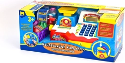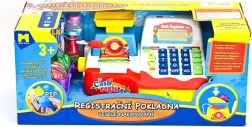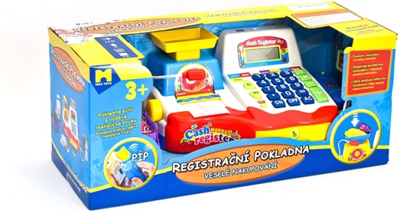 Cassetta portadenaro giocattolo molto amata con cassetto estraibile per le monete, pulsanti funzionanti, microfono, bilancia, cestino e una serie di alimenti finti per i piccoli negozianti. Prodotto a batteria. Adatto ai bambini dai 3 anni in su.