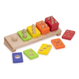 La robusta lavorazione in legno massiccio e la finitura superficiale liscia garantiscono un gioco sicuro. Grazie ai colori vivaci, il giocattolo invoglia a giocare ripetutamente e sviluppa efficacemente la motricità fine, la concentrazione e la pazienza.
