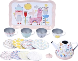 Tutto è ordinatamente riposto in una robusta valigetta, così i bambini possono portare il loro tea party ovunque: in visita, in giardino o a un picnic. Il completo set in metallo da 14 pezzi contiene tutto il necessario per incantevoli pomeriggi di tè.