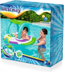 Il divertente gommone gonfiabile BESTWAY Space Splash per bambini dai 3 anni offre gioco sicuro in acqua, tettuccio rimovibile con protezione UV, fondo gonfiabile con finestrella peek‑a‑boo e volante con clacson. Il design “spaziale” e le maniglie confortevoli garantiscono ore di divertimento in piscina, al lago e al mare.