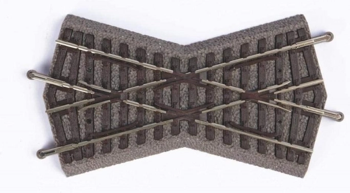 Incrocio con riproduzione dettagliata delle traverse in legno su massicciata in ghiaia, in colori realistici. Combina due binari diritti G119 che formano un angolo di 30°. Caratteristiche principali: 30°, lunghezza 119 mm, inclusa la massicciata. Documentazione: Opuscolo per l’armamento PIKO H0 A-Gleis (DE, EN)