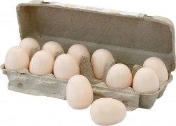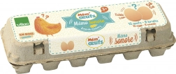 Pexeso sonoro a forma di uova in classica confezione di cartone è ideale per lo sviluppo delle capacità sensoriali nei bambini. Il giocattolo stimola la memoria permettendo ai bambini di cercare coppie di uova con lo stesso suono.