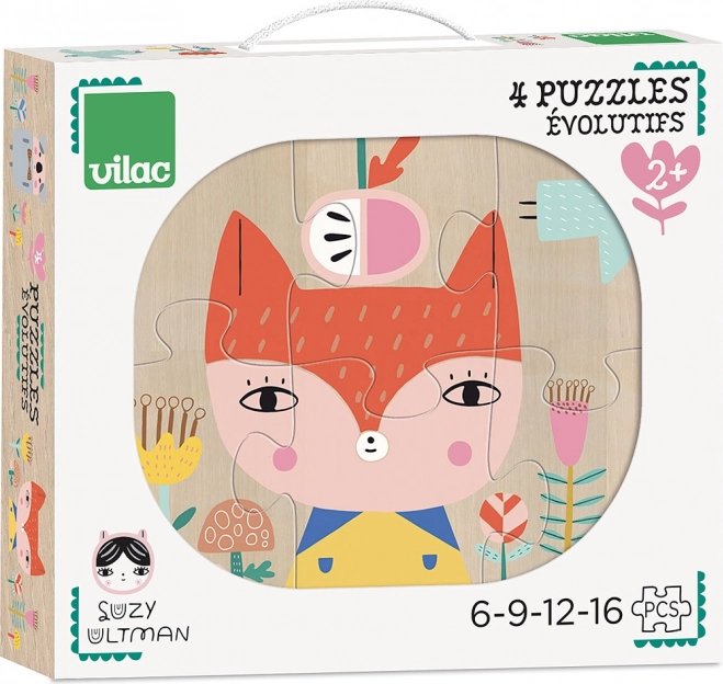 Questi splendidi puzzle in legno con storia, firmati Suzy Ultman, divertono ed educano i tuoi bambini. Ogni set include puzzle da 6, 9, 12 e 16 pezzi, e ogni immagine offre uno sguardo unico nel mondo degli animali e della natura, ricco di fiori e uccelli.