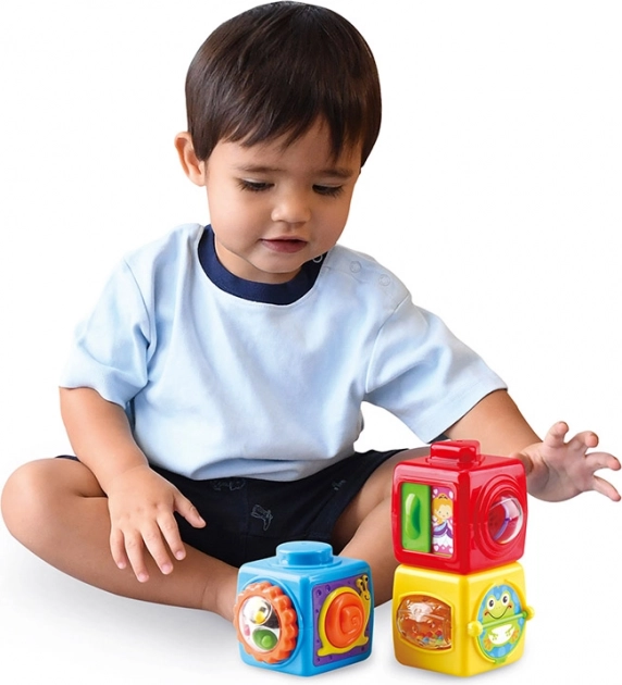 I bambini possono imparare e giocare grazie agli elementi rotanti e mobili dei cubi, che favoriscono lo sviluppo delle loro capacità motorie.
