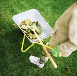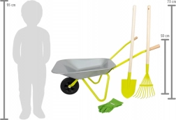Set ideale per piccoli giardinieri! Questa carriola per bambini ha una capacità di circa 10 litri ed è dotata di guanti di cotone, pala e rastrello, grazie ai quali i bambini possono facilmente aiutare in giardino.