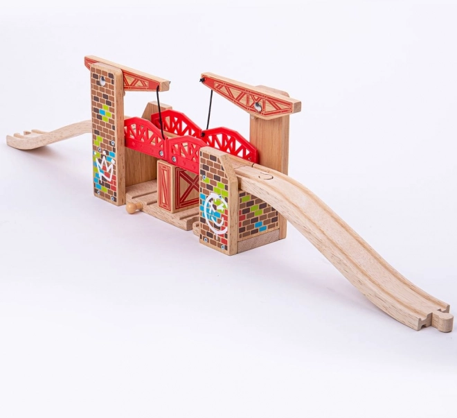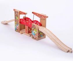 Il doppio ponte sollevabile di Bigjigs Rail ti consente di sollevare facilmente entrambi i lati, offrendo così spazio sufficiente per il passaggio simultaneo di due treni. Questo ponte è compatibile con la maggior parte delle altre marche di ferrovie in legno.