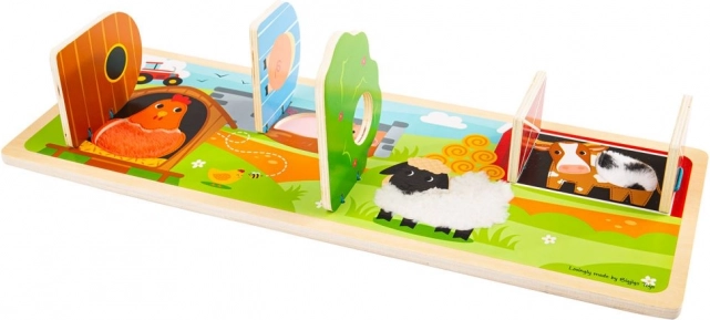 I bambini possono sbirciare dietro ai cancelli e scoprire gli animaletti nascosti, stimolando la motricità fine, la coordinazione mano–occhio e un apprendimento divertente.