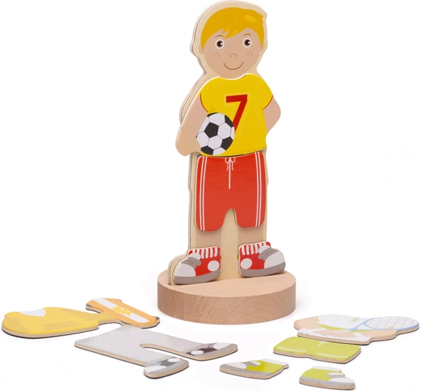 Stimola la fantasia dei bambini con il puzzle magnetico con vestiti di Bigjigs Toys. Grazie ai pezzi magnetici, i piccoli possono cambiare rapidamente l’aspetto del personaggio e creare storie tutte loro. Il set offre 7 diversi outfit sportivi, una pratica scatola robusta con coperchio magnetico ed è realizzato con materiali di alta qualità e di origine responsabile. Il gioco sviluppa creatività, motricità fine e coordinazione occhio–mano.