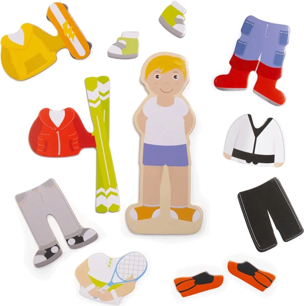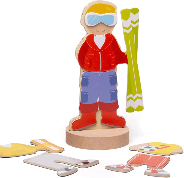 Il puzzle magnetico con vestiti offre ai bambini divertimento e apprendimento in un unico gioco. Grazie alle sette combinazioni sportive, i piccoli creatori possono mixare e abbinare gli abitini, inventare outfit unici e raccontare storie sui loro eroi. La scatola robusta con coperchio magnetico mantiene tutti i pezzi insieme: ideale per i viaggi e per la cameretta.