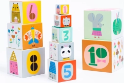 Scopri il set di cubi VILAC, divertente ed educativo, con illustrazioni di Suzy Ultman. Dieci cubi in cartone leggeri insegnano ai bambini numeri, colori e animali, sviluppando al contempo la motricità fine e la coordinazione occhio–mano. La lavorazione ecologica e il design meraviglioso piaceranno a bambini e genitori.