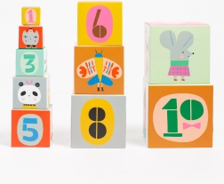 La torre impilabile di cubi VILAC x Suzy Ultman unisce divertimento e apprendimento. I bambini possono costruire torri alte, ordinare i cubi per dimensione o esplorarli grazie ai motivi allegri con animali e numeri da 1 a 10. Le illustrazioni di Suzy Ultman sono giocose, colorate e stimolano la fantasia dei più piccoli.