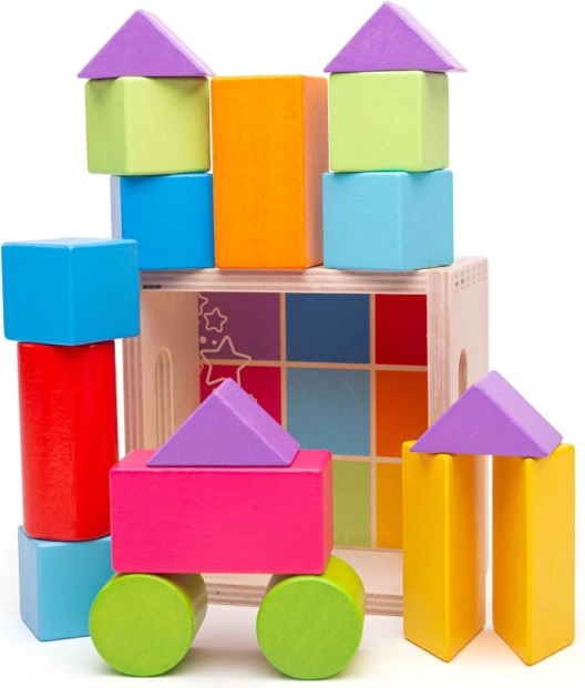 - Il set comprende 17 blocchi colorati di varie forme, che supportano lo sviluppo delle abilità e la coordinazione occhio-mano.